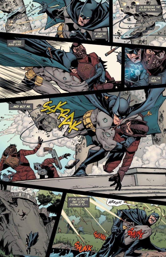 Batman se retrouve donc encore une fois face à un ennemi qui, en plus de posséder autant de ressource technologique que lui, a su fédérer autour de lui des ennemis de Batman de seconde zone connu pour leurs ego démesurés. Mais même en passant au-dessus de ces incohérences le récit manque d’entrain et de consistance. Le scénariste semble en roue libre et ne paraît pas savoir où mener son histoire ni comment lui donner de l’ampleur. Le fait de retrouver le tandem père-fils avec batman de nouveau accompagné de Damian Wayne ne suffit pas à rendre l’intrigue intéressante même si Tomasi excelle toujours à écrire le dynamique duo.