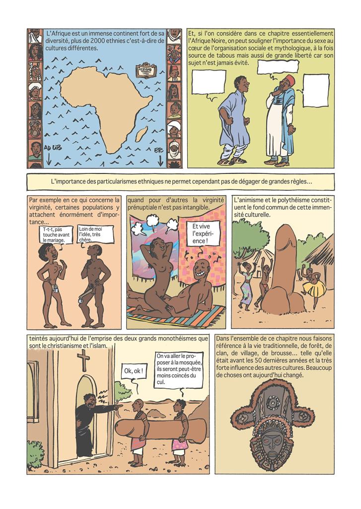 Chronique : Une chose est sur c’est que au éditions Les arènes on à pas de tabou et c’est pour le mieux du lecteurs parce ce que cette bd est vraiment un petit chef d’œuvre et elle ne s’agit pas que de cul, c’est toute une philosophie qui se cache derrière. Si vous n’avez comme moi pas lu le tome 1 pas grave Philippe Brenot & Laetitia Coryn savent mettre autant en avant le plaisir physique que le plaisir mental. Il y a de la découverte, de l’évolution pour chacun dans l’histoire de l’Afrique à l’Asie, elle renverse les tabous si connu des communs des mortels. Elle va permettre l’ouverture pour beaucoup d’entre vous. Ce bouquin est une perle, il est la vague qui va pousser bon nombre d’entre nous a enfin prendre du plaisir par tous les moyens, mais surtout aussi en donner. Ce livre oui aborde un sujet que peut de personne ose parler et qui pourtant fait parti du quotidien donc le voir sous forme d’histoire est ludique si vous souhaitez vous informer sur l’éducation sexuelle où son évolution ce livre va vous apprendre le plaisir de pleins de façons et par pays. Ce livre est écrit pour que tout le monde quelque soit l’orientation sexuelle, le genre,…s’y retrouve.
