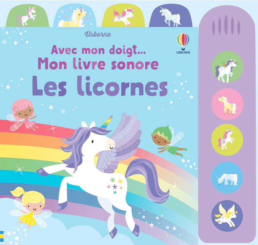 Les jeunes enfants découvriront avec plaisir un univers enchanté peuplé de licornes au fil des pages cartonnées, bien adaptées aux petites mains, de ce livre sonore. En appuyant sur les boutons, ils écouteront les enregistrements qui accompagnent les jolies scènes imagées.