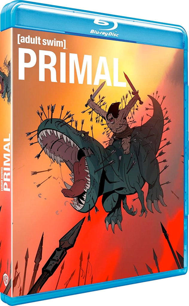 Image et Son : La série Primal nous offre une expérience visuelle et sonore époustouflante, sublimée par l’édition en haute-définition sur Blu-ray par Warner Bros. L’image est d’une clarté remarquable, avec des couleurs et des contrastes éclatants, ainsi qu’une définition sans faille et un piqué d’une grande précision. Les compositions de plans ingénieuses créées par Genndy Tartakovsky et son équipe, qui combinent des personnages aux contours francs et massifs en avant-plan avec des arrière-plans stylisés, sont un véritable régal visuel. Du côté du son, il n’y a pas de dialogues à proprement parler, mais des grognements et des bruits d’ambiance, ce qui est un choix ambitieux pour Primal. Cependant, cela permet à Warner de proposer un mixage DTS-HD 5.1 Master Audio unique, qui permet à la bande originale de Tyler Bates et Joanne Higginbottom de se distinguer dans une ambiance sonore immersive à 100%. Le mixage explore avec ingéniosité chaque parcelle de la scène sonore, mélangeant des bruitages parfois agressifs à des surrounds d’ambiance épatants. Cette présentation acoustique est à la hauteur de la série : intense et dynamique.