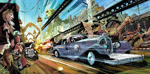 Déception encore concernant les personnages. Ils sont trop nombreux, tout simplement. C’est là que le choix de produire des récits en six numéros qui ne totalisent même pas 200 pages montre ses limites. Difficile de s’attacher à cet équipage hétéroclite en si peu de temps. Il m’a fallu trois numéros pour comprendre que Moriah et Bill étaient en couple sans que je ne parvienne jamais à les imaginer ensemble. Le capitaine Carpenter est le personnage le plus mémorable et attachant avec sa gouaille, son physique d’ours et son entrée en scène dans le premier épisode que l’on peut qualifier de trivial et qui offre l’un des rares moments d’humour du récit. Son charisme éclipse les autres personnages, y compris ses propres frères et la brave Moriah. Là où Basketful of heads se focalisait sur un personnage et une narration électrique, Plunge au contraire multiplie les explications sans éviter certaines incohérences ou qui rendent la lecture brouillonne au final.
